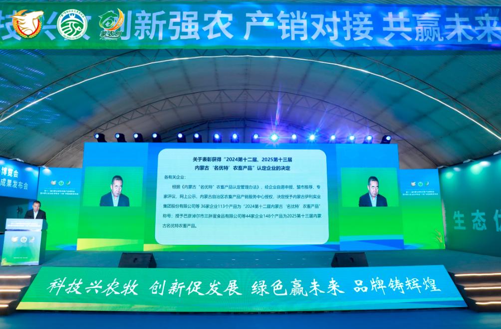 協(xié)會(huì)會(huì)長(zhǎng)徐建忠作精彩發(fā)言,秘書(shū)長(zhǎng)呼群宣讀《關(guān)表彰獲得2024年第十二屆、2025年第十三屆內(nèi)蒙古'名優(yōu)特'農(nóng)畜產(chǎn)品”認(rèn)定企業(yè)的決定》并代表協(xié)會(huì)與內(nèi)蒙古教育出國(guó)留學(xué)服務(wù)中心簽訂的框架合作協(xié)議項(xiàng)目。