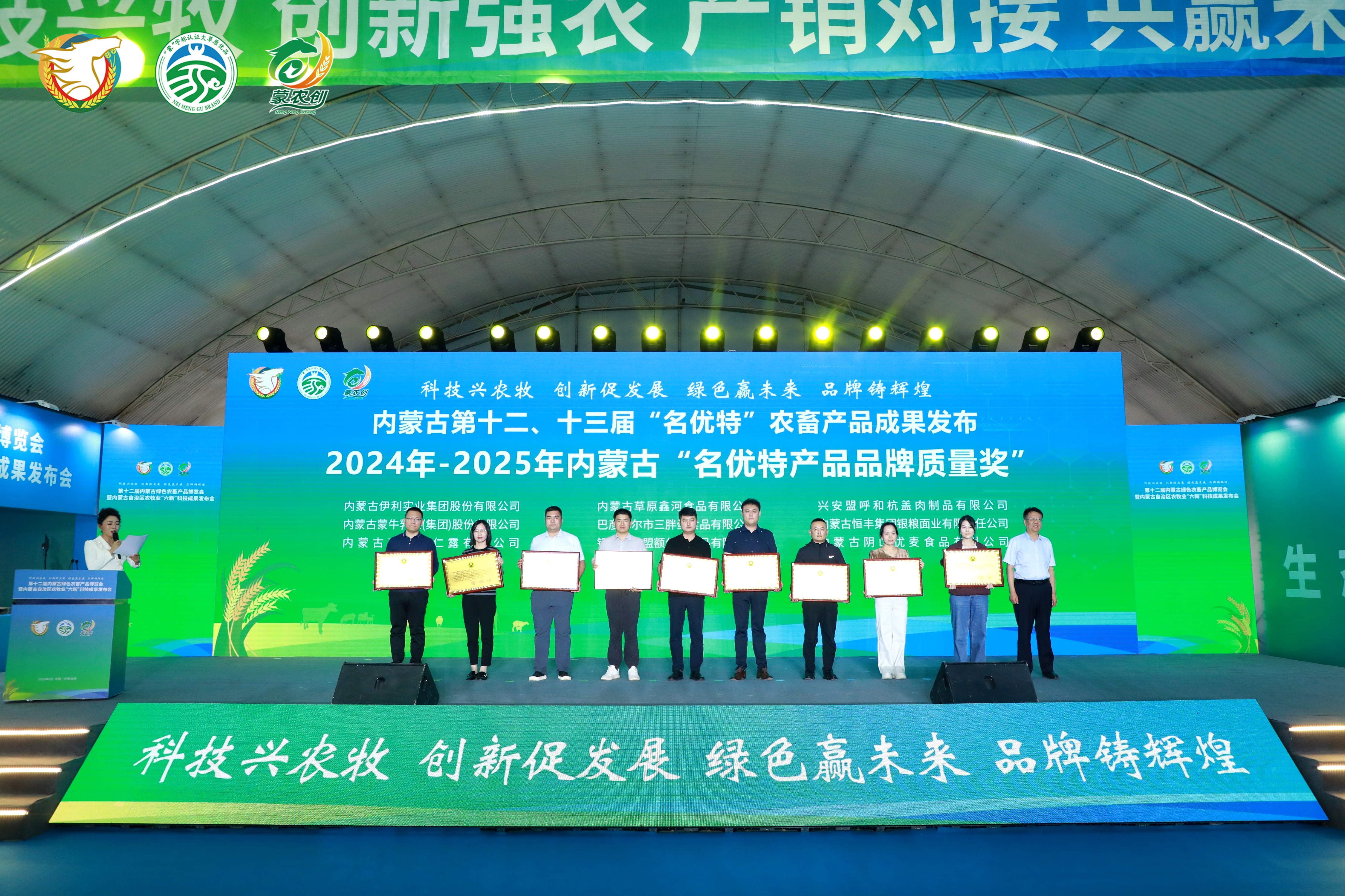 發(fā)布會(huì)上自治區(qū)農(nóng)牧廳二級(jí)巡視員侯雁冰、畜牧局局長(zhǎng)紅海、自治區(qū)人民政府駐上海辦事處黨組書(shū)記、主任李志剛、自治區(qū)農(nóng)牧廳鄉(xiāng)村產(chǎn)業(yè)發(fā)展和農(nóng)墾處處長(zhǎng)邢瑞、農(nóng)畜產(chǎn)品質(zhì)量安全中心副主任云巖春、協(xié)會(huì)會(huì)長(zhǎng)徐建忠、內(nèi)蒙古綠色與有機(jī)食品協(xié)會(huì)常務(wù)副會(huì)長(zhǎng)、高級(jí)顧問(wèn)邢黎明為獲得第十二、十三屆名優(yōu)特認(rèn)證的企業(yè)頒發(fā)獎(jiǎng)牌并合影留念。