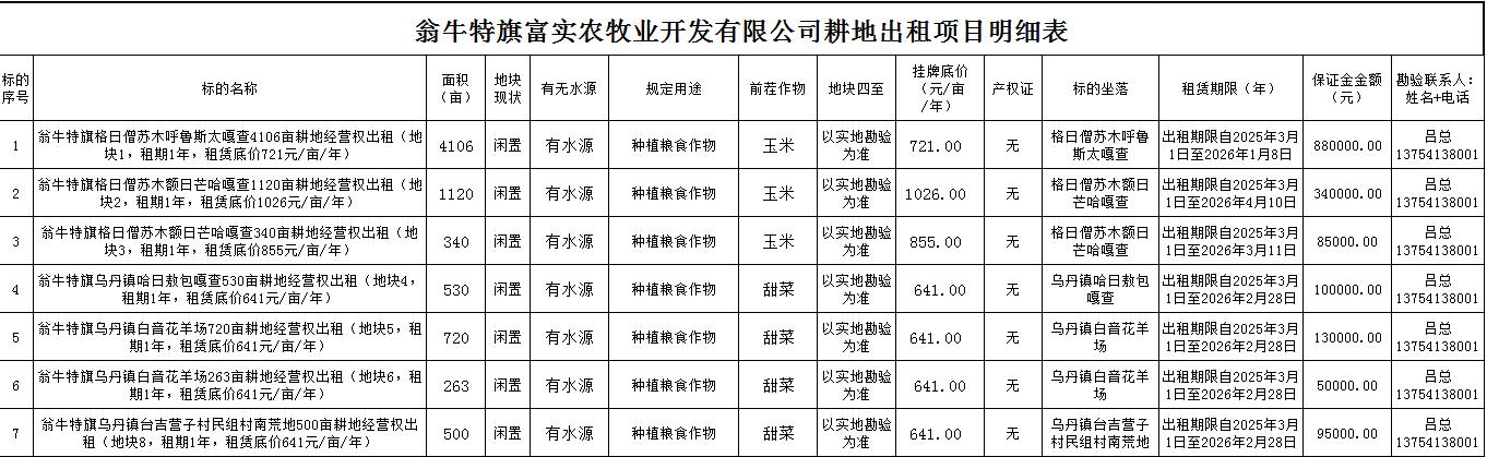 翁牛特旗富實(shí)農(nóng)牧業(yè)開發(fā)有限公司約7579畝耕地經(jīng)營(yíng)權(quán)出租