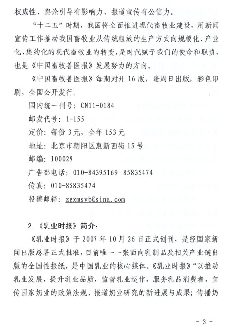 關于建議會員單位訂購《中國畜牧獸醫(yī)報》、《乳產(chǎn)業(yè)時報》的通知