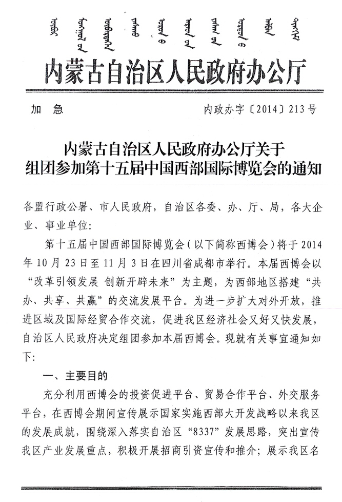 關(guān)于第十五屆中國西部國際博覽會的通知
