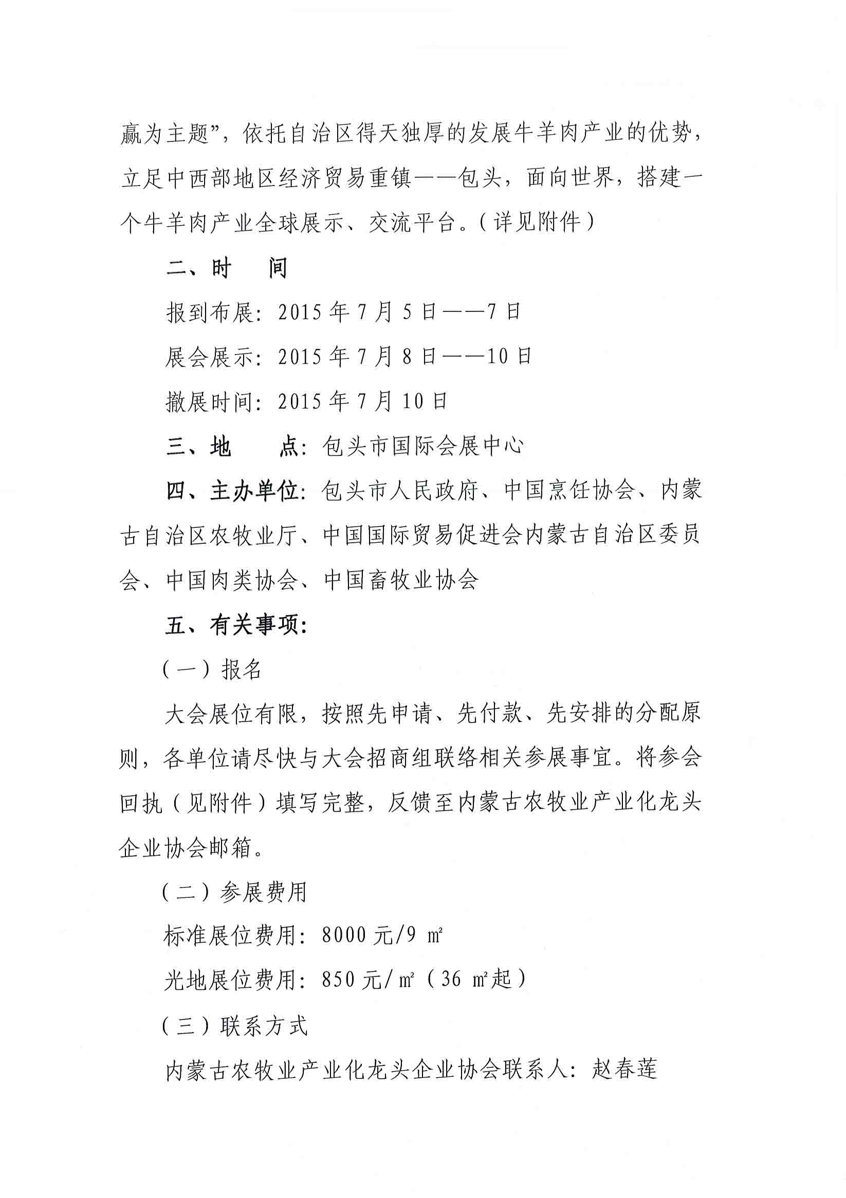 展會(huì)名稱: 2015第二屆中國(國際)牛羊肉產(chǎn)業(yè)大會(huì)暨包頭第一屆綠色農(nóng)畜產(chǎn)品博覽會(huì)