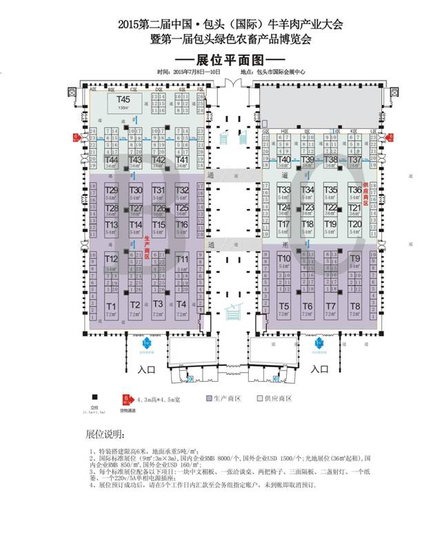 根據(jù)規(guī)劃,展館占地面積為10664平米。其中B館占地面積為5832平米可供搭建標(biāo)準(zhǔn)展位(3mX3m256個(gè),主要以國內(nèi)外牛羊肉生產(chǎn)加工企業(yè)、生產(chǎn)加工設(shè)備、包裝技術(shù)、冷鏈服務(wù)、各地區(qū)集體參展、獸醫(yī)獸藥、圈舍舍建設(shè)、飼草、金融服務(wù)機(jī)構(gòu)、品牌營銷機(jī)構(gòu)等企業(yè)為主導(dǎo)。C館占地面積4832平米,可供搭建標(biāo)準(zhǔn)展位(3mX3m229個(gè),主要以包頭市轄內(nèi)各農(nóng)牧業(yè)企業(yè)等參展單位為主。