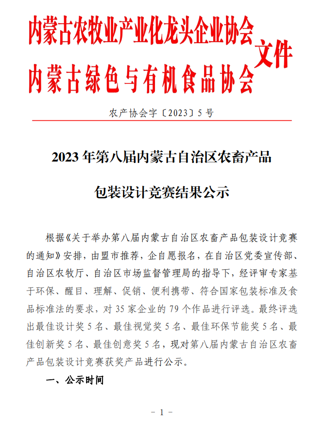 2023年第八屆內(nèi)蒙古自治區(qū)農(nóng)畜產(chǎn)品包裝設(shè)計(jì)競(jìng)賽結(jié)果公示