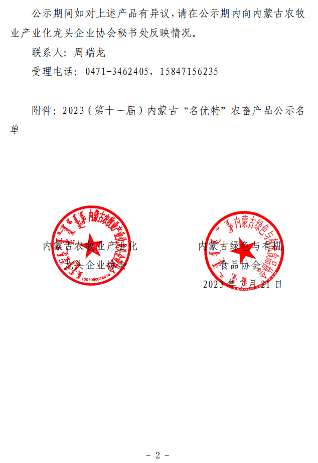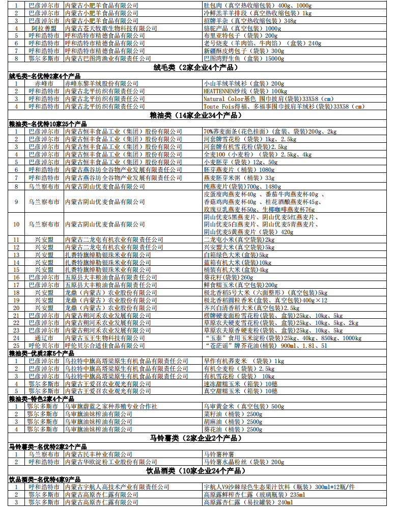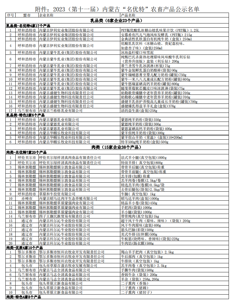 2023第十一屆內(nèi)蒙古“名優(yōu)特”農(nóng)畜產(chǎn)品認(rèn)定公示名單