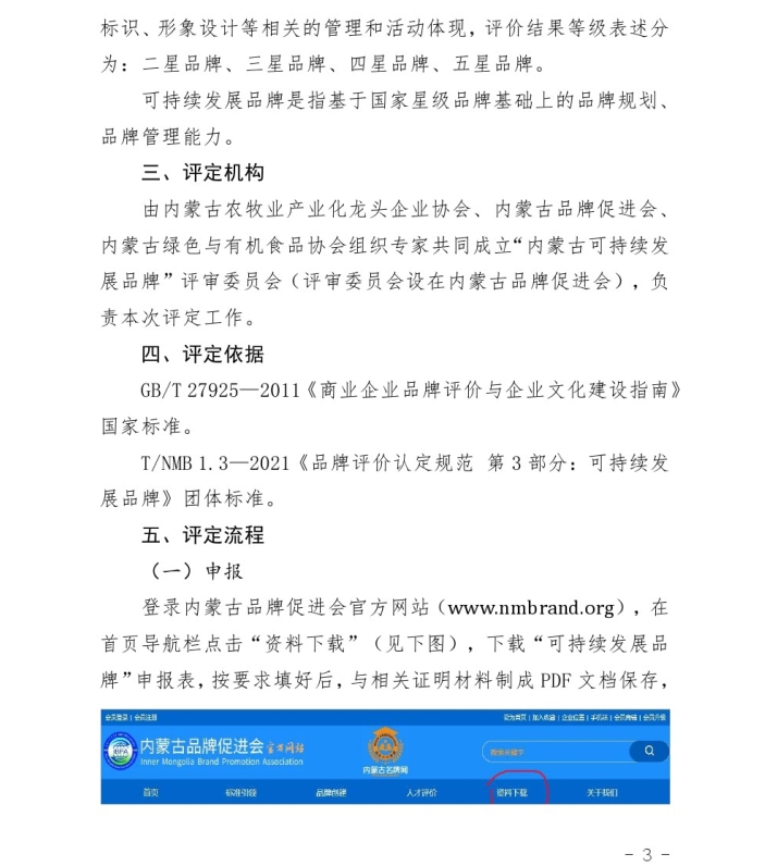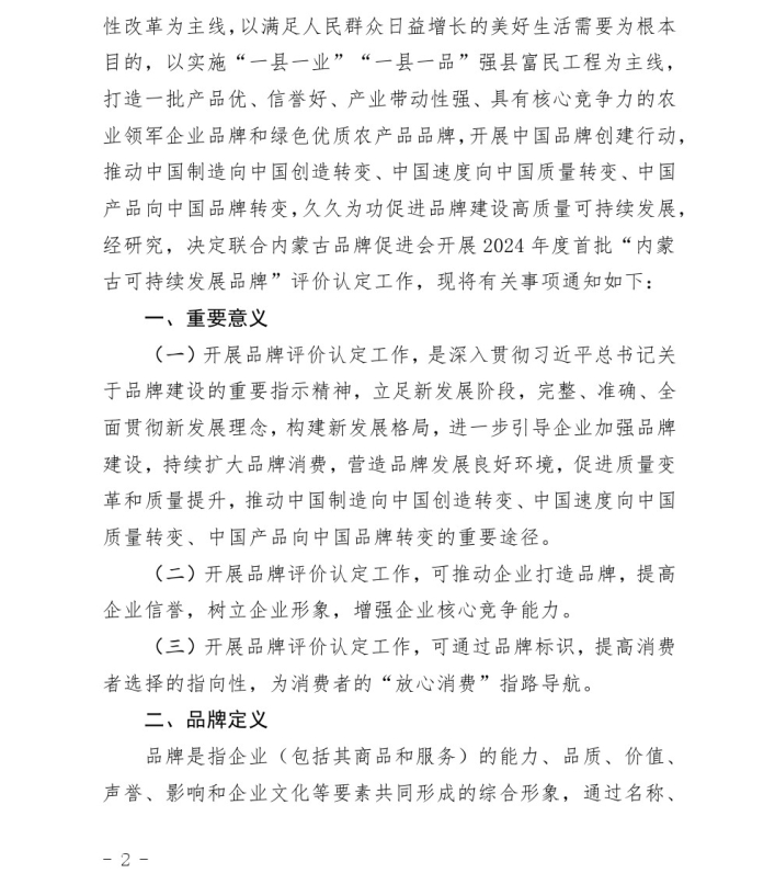 關(guān)于開(kāi)展2024年度首批“內(nèi)蒙古可持續(xù) 發(fā)展品牌”評(píng)價(jià)認(rèn)定工作的通知