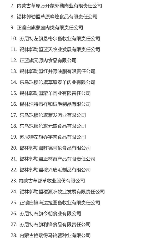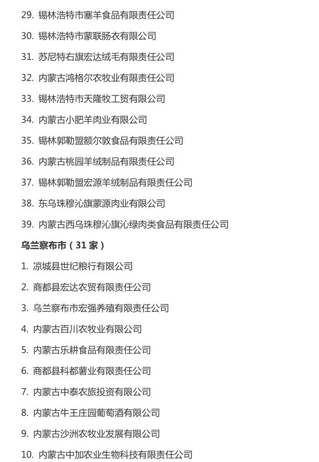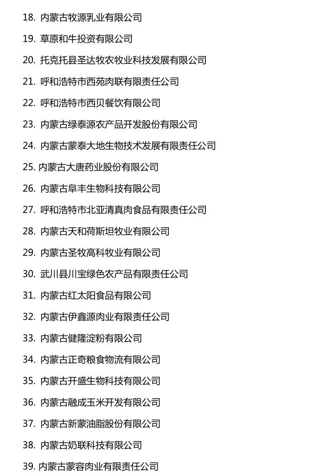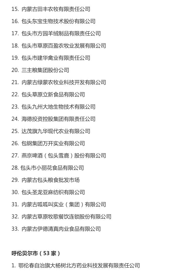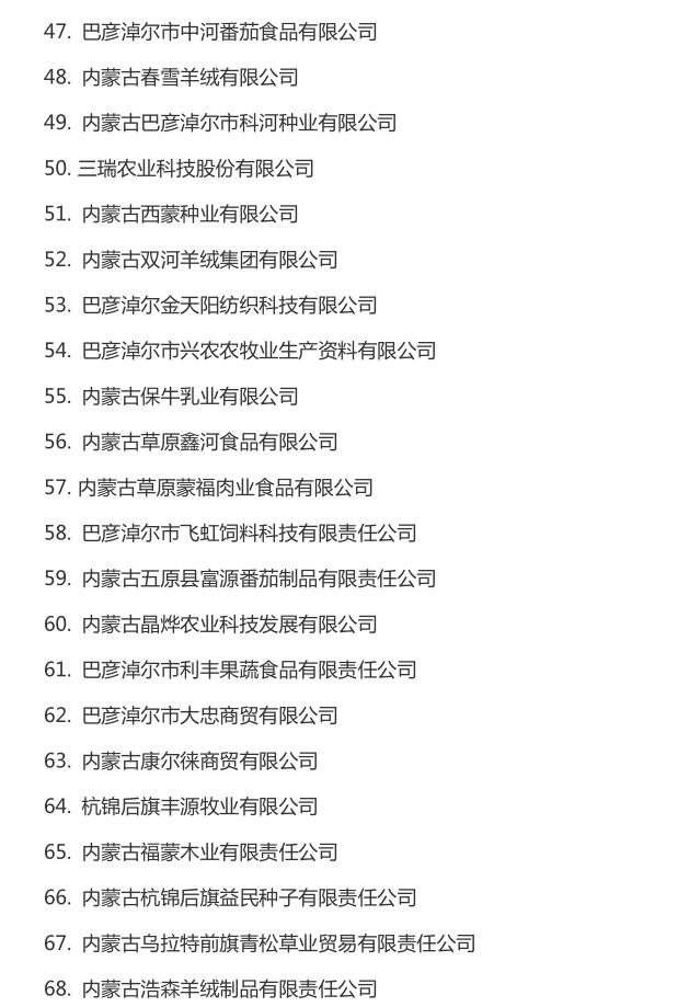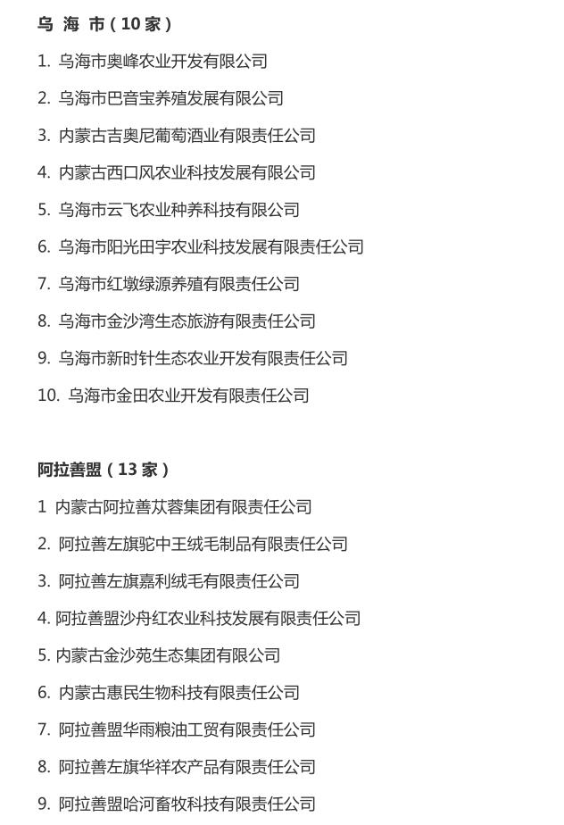 企業(yè)名稱:截止2016年末自治區(qū)級(jí)農(nóng)牧業(yè)產(chǎn)業(yè)化 重點(diǎn)龍頭企業(yè)名單​